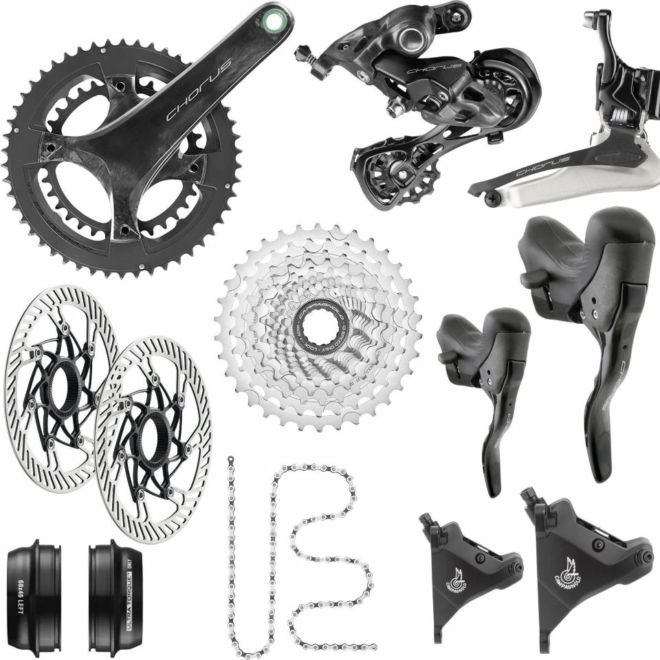◌ Conçu pour le cyclisme sur route intense, le groupe Campagnolo Chorus vous offre des composants 12 vitesses de haute qualité combinés à des technologies de pointe. Cela signifie que vous aurez tout ce dont vous avez besoin pour mettre à jour votre transmission.