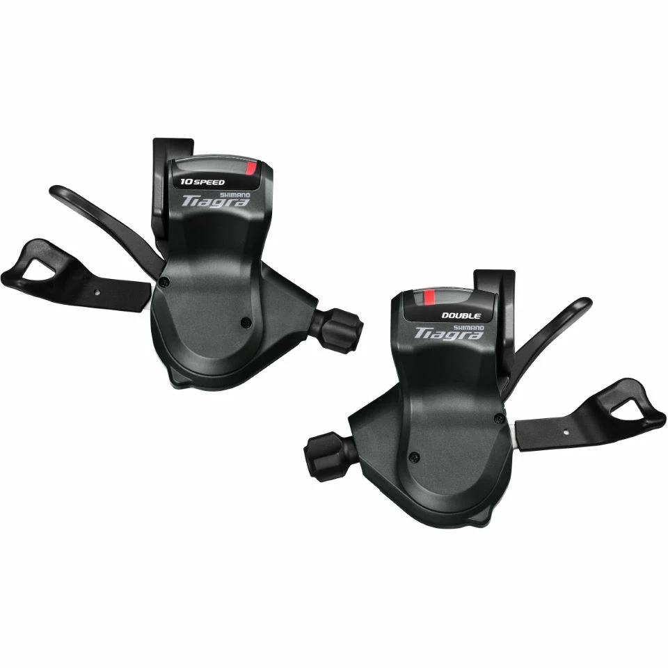 Les Shimano Tiagra Rapidfire (doubles et triples) sont des commandes de style VTT précises conçues pour les vélos de route dotés d’un cintre plat et d’une transmission de route à 10 vitesses.