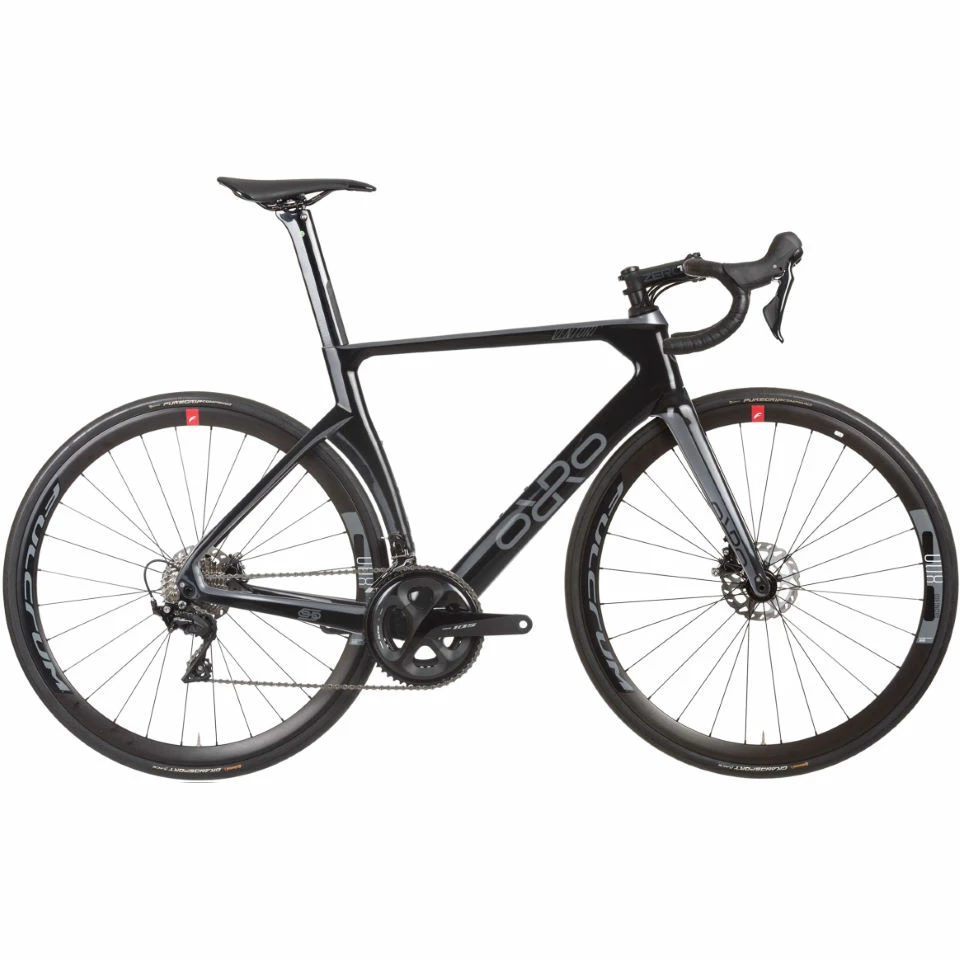 The Orro Venturi EVO 105 R800DB Road Bike is a top-level speed machine that features a carbon frame and fork, a Shimano 105 11-Speed groupset, hydraulic disc brakes and Fulcrum R800 wheels wrapped in Continental Grand Sport Race tyres.